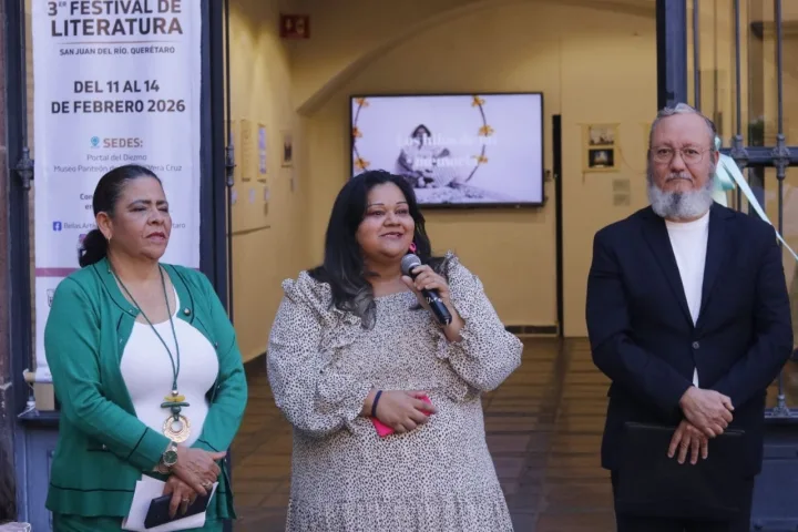 Durante el primer día de actividades del “Tercer Festival de Literatura San Juan del Río 2026”, además de la declaración oficial de inicio de este evento, fueron inauguradas la exposición “Los Hilos de Mi Memoria”, de Maggie Loredo, y el recital “Flor y Corona: Voces Poéticas de los Juegos Florales de San Juan del Río, Querétaro”.