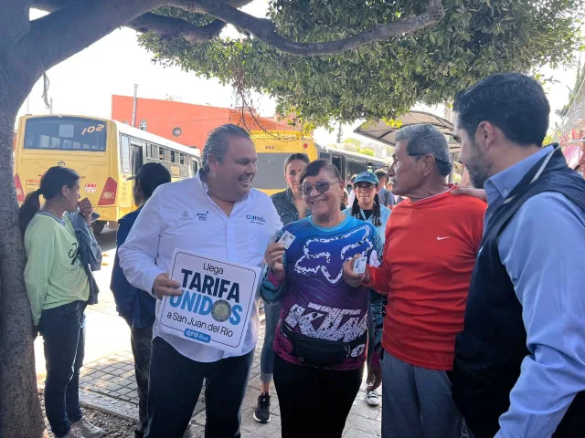Con el propósito de apoyar la economía familiar y garantizar una movilidad más accesible, el director de la Agencia de Movilidad del Estado de Querétaro (AMEQ), Gerardo Cuanalo Santos, anunció junto al senador, Agustín Dorantes Lámbarri y al alcalde, Roberto Cabrera Valencia, el arranque oficial del programa Tarifa Unidos en el municipio de San Juan del Río.
