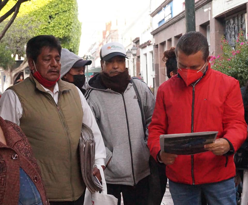 Conversa Hugo Cabrera con voceadores de San Juan del Río.