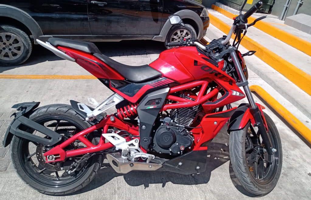 Después de identificarse con el conductor, quien decía tener mucha prisa, le pidieron sus documentos, pues él decía ser el propietario; su respuesta fue que no los traía consigo, ni la licencia de conducir, ni la tarjeta de circulación y la motocicleta marca Vort -X, color rojo, sin placa.