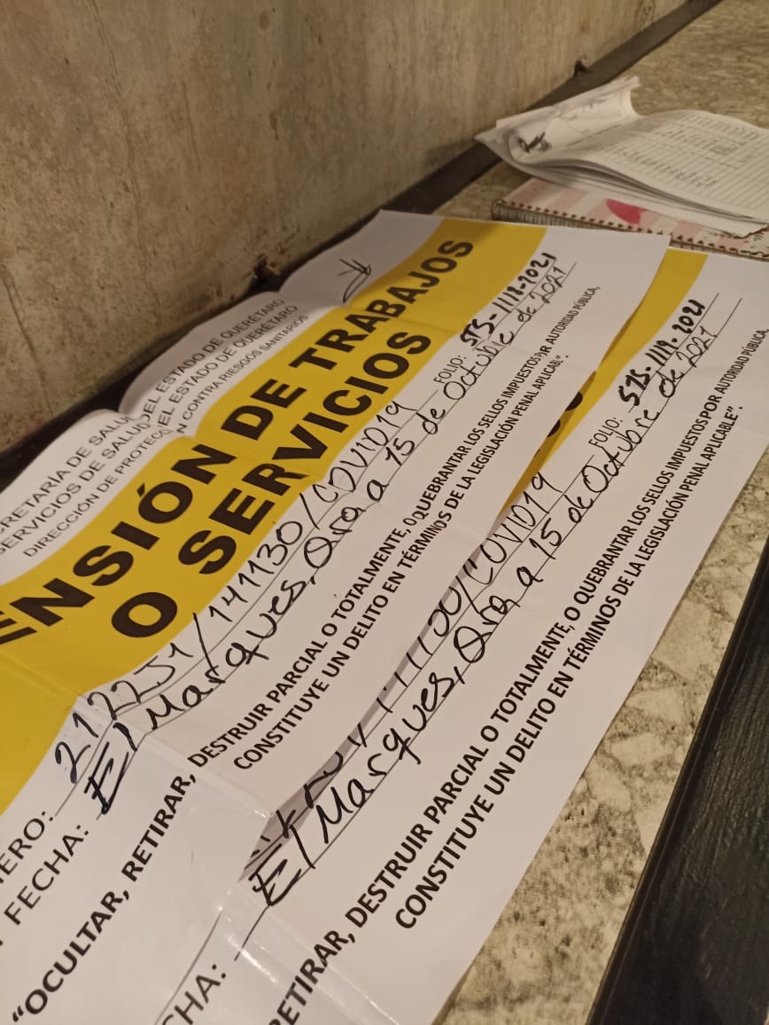 En Colón se suspendió un consultorio médico; en Huimilpan un servicio de Rayos X; en Pinal de Amoles un servicio de sanitarios públicos; en San Joaquín un restaurante; y en Tequisquiapan un gimnasio.