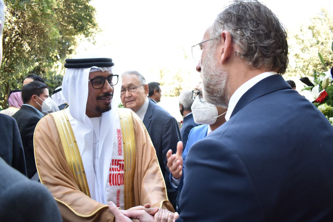 En representación del gobernador del estado, Mauricio Kuri González, el titular de la Secretaría de Desarrollo Sustentable, Marco Antonio Del Prete Tercero, participó en la ceremonia con motivo del 50 Día Nacional de los Emiratos Árabes Unidos, en este evento tuvo oportunidad de saludar al embajador de aquel país en México, Ahmed Hatem Bargash Almenhali.