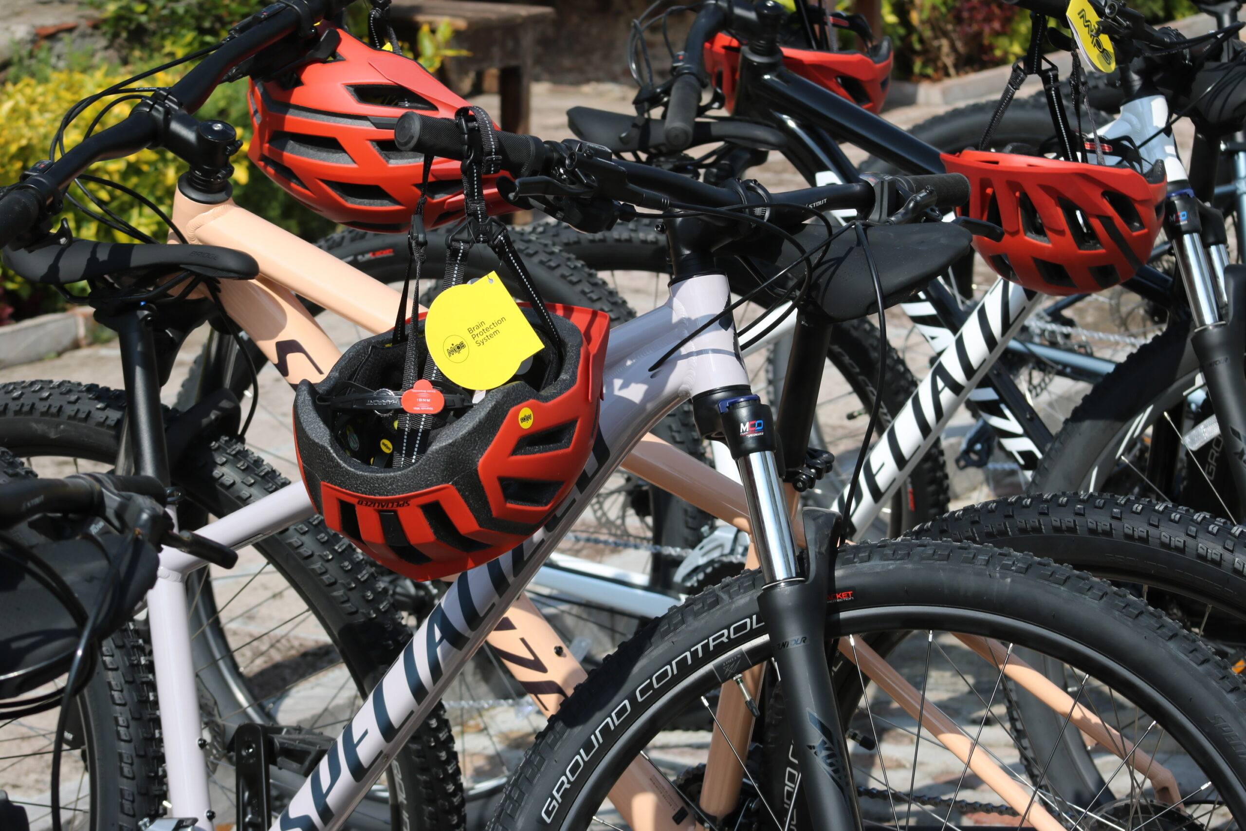 Entre los materiales entregados, se encuentran piezas de señalética, cuatrimotos y bicicletas de montaña.