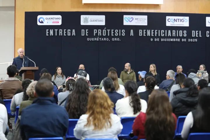 Con el objetivo de contribuir a la reincorporación de la vida social, laboral y productiva de las personas con alguna discapacidad, la presidenta del Patronato del Sistema Estatal DIF, Car Herrera de Kuri, encabezó la entrega de 17 prótesis destinadas para beneficiarios que requieren este tipo de apoyo para mejorar su movilidad.
