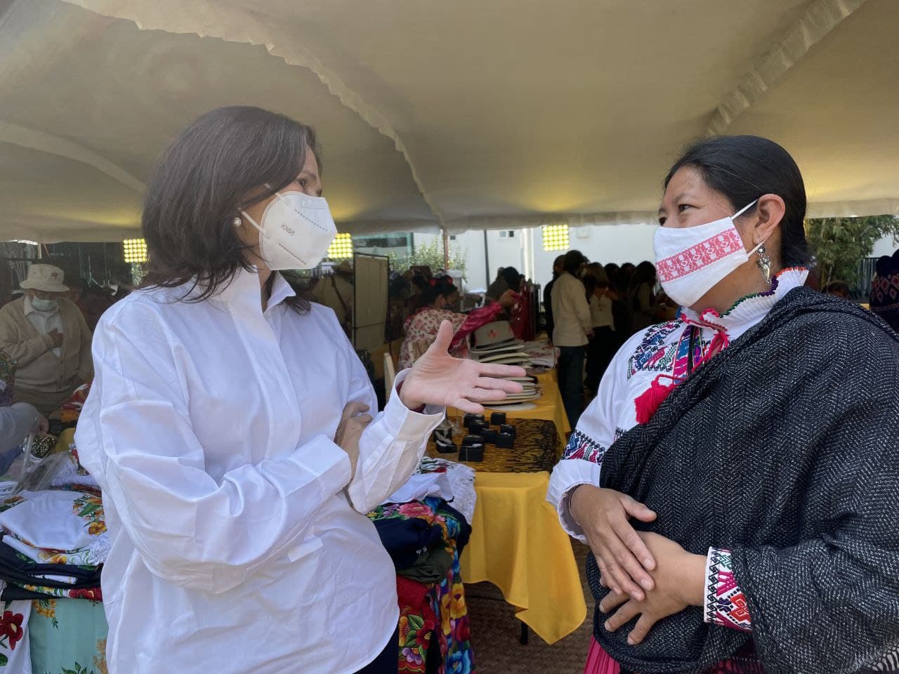 Durante cuatro días, del 18 al 21 de noviembre, en el Complejo Cultural Los Pinos en la Ciudad de México, se exhibirán y comercializarán productos como textiles, arte utilitario, cerámica, mobiliario, accesorios y joyería, esto con el fin de brindar un reconocimiento a su vitalidad cultural. Representando a Querétaro, se econtraba Genoveva Pérez Pascual de las Artesanas de San Ildefonso Tultepec, quienes además de exhibir y comercializar sus prendas originarias y muñecas, participan en las pasarelas, donde lucen la belleza del arte textil tradicional de su comunidad.