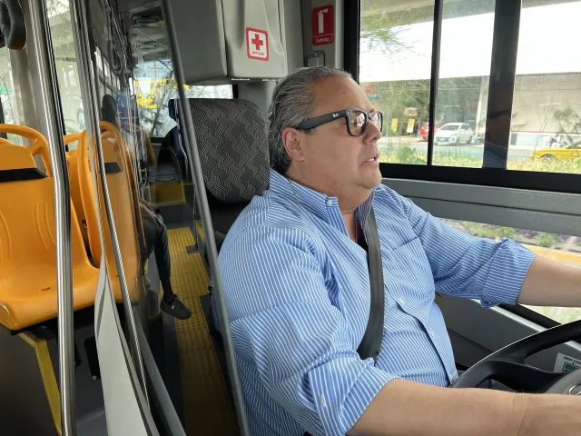 Como parte del programa Voy Contigo, el director de la Agencia de Movilidad del Estado de Querétaro (AMEQ), Gerardo Cuanalo Santos, dio inicio a la estrategia “Manejando Qrobus”, en donde condujo un autobús de la ruta T12 Av. de La Luz a Real Solare con la finalidad de detectar áreas de oportunidad en temas operativos y de infraestructura vial, a través de un ejercicio de empatía con las y los operadores del sistema Qrobus.