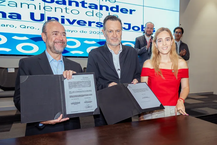 Este año también se llevó a cabo la firma del convenio y el lanzamiento de la plataforma Universia Jobs, resultado de la colaboración entre Santander México y SEJUVE, cuyo objetivo es fortalecer la conexión entre jóvenes y empleadores a través de un entorno digital accesible y eficiente.