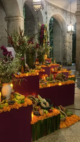 El estado de Querétaro participa en la ofrenda del Día de Muertos que se montó en Palacio Nacional de la Ciudad de México, dedicada a los estados que resultaron afectados por las recientes lluvias, y que forma parte de las celebraciones que encabeza la Secretaría de Cultura del Gobierno de México, a través de la Unidad de Culturas Vivas, Patrimonio Inmaterial e Interculturalidad.