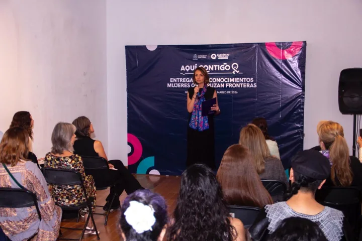 La secretaria de Cultura del estado, Ana Paola López Birlain, encabezó el encuentro “Mujeres que cruzan fronteras”, evento que representa un acto de reconocimiento, de justicia y de orgullo, con historias que comenzaron en Querétaro, pero que encontraron eco en el mundo; casos que cruzaron fronteras, pero que también abrieron caminos para muchas más.