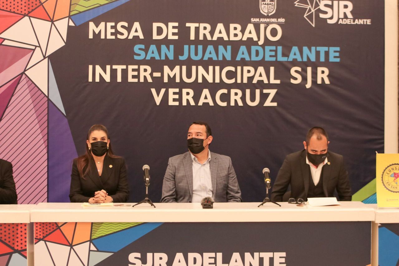 El Presidente Municipal de San Juan del Río, Roberto Cabrera Valencia, encabezó la Mesa de Trabajo San Juan Adelante, Intermunicipal San Juan del Río-Veracruz, en la que participaron empresarios, industriales y alcaldes electos de varios municipios de dicha entidad.