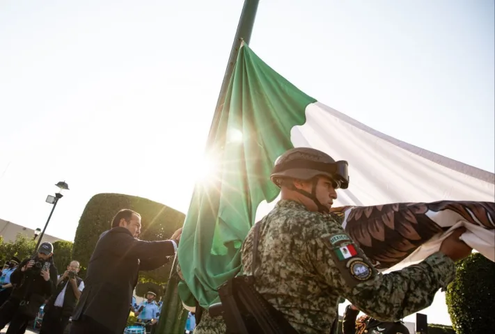 • _El acto cívico se llevó a cabo en la Plaza Independencia, en el Centro Histórico de San Juan del Río, donde también estuvo presente el Comandante del 7º Regimiento Mecanizado La Llave, Marcos Suástegui Salado._
