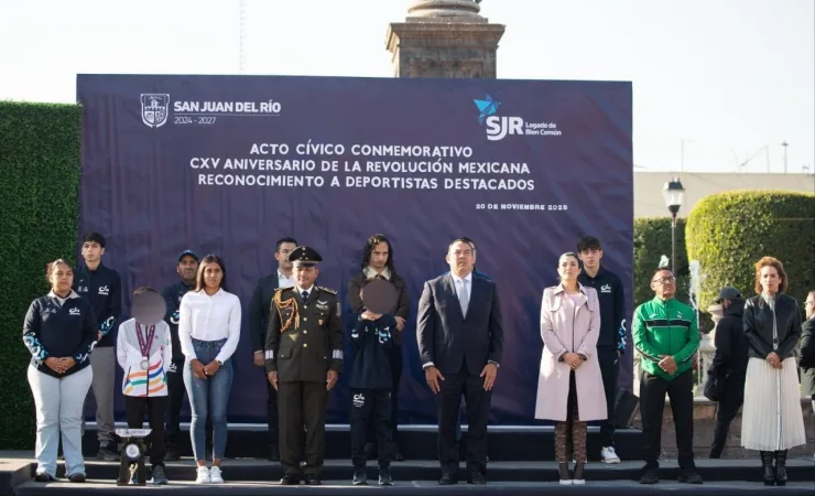 Al encabezar el Acto Cívico Conmemorativo por el 115 Aniversario del Inicio de la Revolución Mexicana, realizado en la Plaza Independencia, en el Centro Histórico del municipio de San Juan del Río, el presidente municipal sanjuanense, Roberto Cabrera Valencia, entregó reconocimientos a deportistas destacados en diferentes disciplinas.