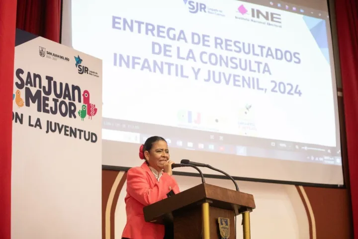 San Juan del Río cree en la participación, en la dignidad de las personas y en el Legado de Bien Común que guía y une los esfuerzos de la sociedad y el gobierno, sostuvo, en representación del presidente municipal sanjuanense, Roberto Cabrera Valencia, la regidora síndica del Ayuntamiento de San Juan del Río, Rosalba Ruiz Ramos, durante la presentación de los resultados de la Décima Consulta Infantil y Juvenil 2024.