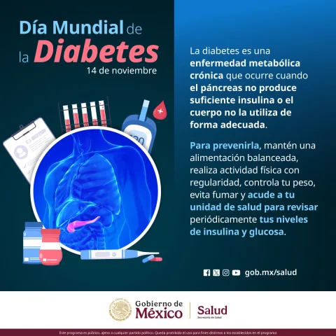 La Secretaría de Salud (SESA) del estado de Querétaro informa que cada 14 de noviembre se conmemora el Día Mundial de la Diabetes. En esta fecha se invita a reflexionar sobre el impacto de esta enfermedad en la salud de la población y a promover acciones que fortalezcan la prevención, el diagnóstico oportuno y la atención adecuada.