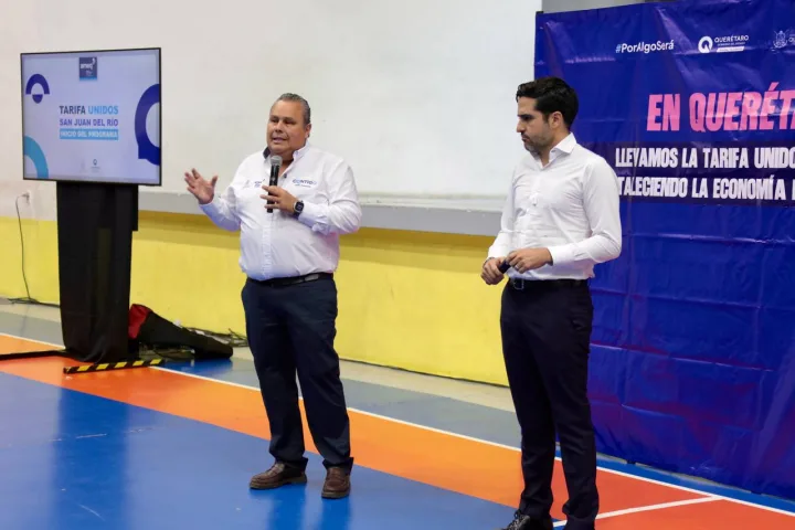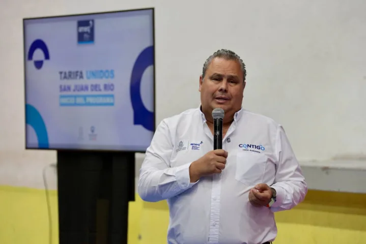 En rueda de prensa, el director de la Agencia de Movilidad del Estado de Querétaro (AMEQ), Gerardo Cuanalo Santos, en compañía del senador de la República de México, Agustín Dorantes Lámbarri, indicó que la tarifa preferente más baja de todo el país, la Tarifa Unidos, estará operando en los tiempos previstos en el municipio de San Juan del Río, fortaleciendo así la movilidad y la economía de las familias queretanas.