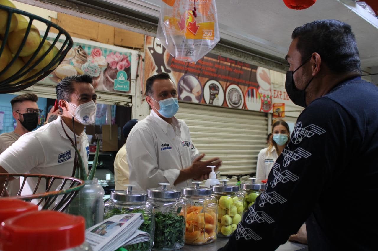 Durante su primer día de campaña, Felifer Macías compartió sus propuestas con vecinos de la colonia Fray Junípero Serra; posteriormente acompañado del candidato a la gubernatura del estado de Querétaro, Mauricio Kuri, recorrió el mercado de la Presidentes.